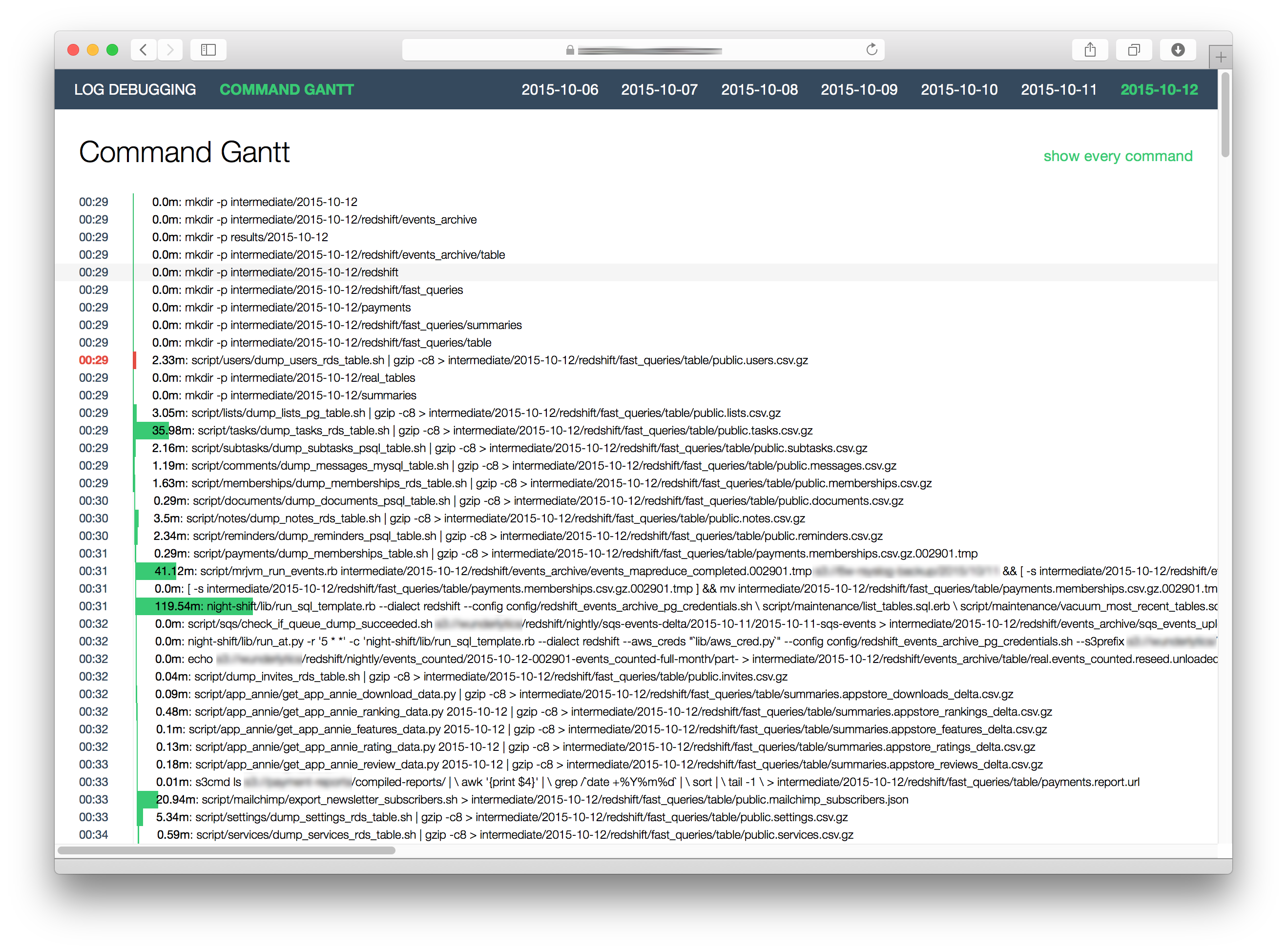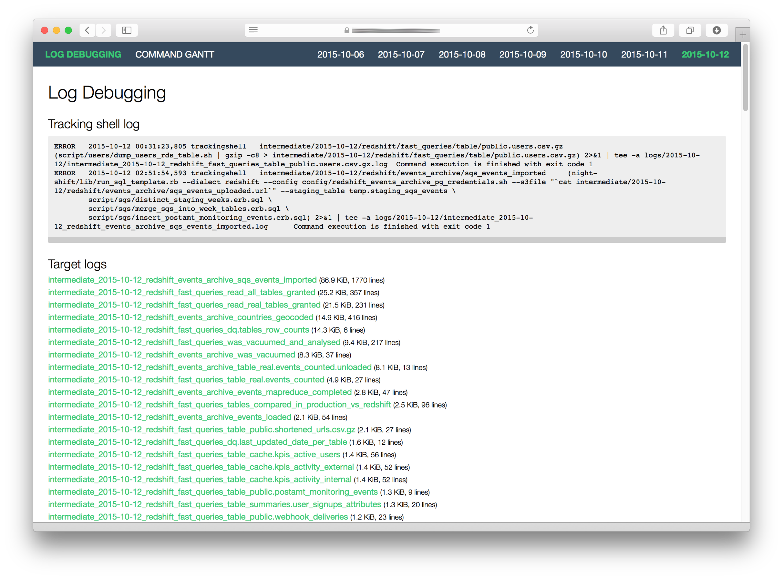 Makefilewrapper that gets triggered bycron. It tries to run it at mostNIGHT_SHIFT_MAX_ATTEMPTStimes.- Runs all make targets in a trackingshell, so timing information, output and errors could be logged. You can add extra steps too (e.g.: upload results into S3).